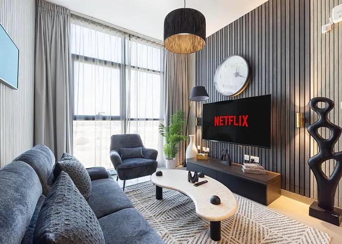 1Br Aesthetic Home By Blue Cloud Holidays lägenhet erbjuder ett komplett kök samt rum med plattskärms-TV med satellitkanaler och luftkonditionering. Sharjahs arkeologiska museum ligger 7 km från lägenheten, medan Sharjah Science Museum ligger ca 8 km bort.